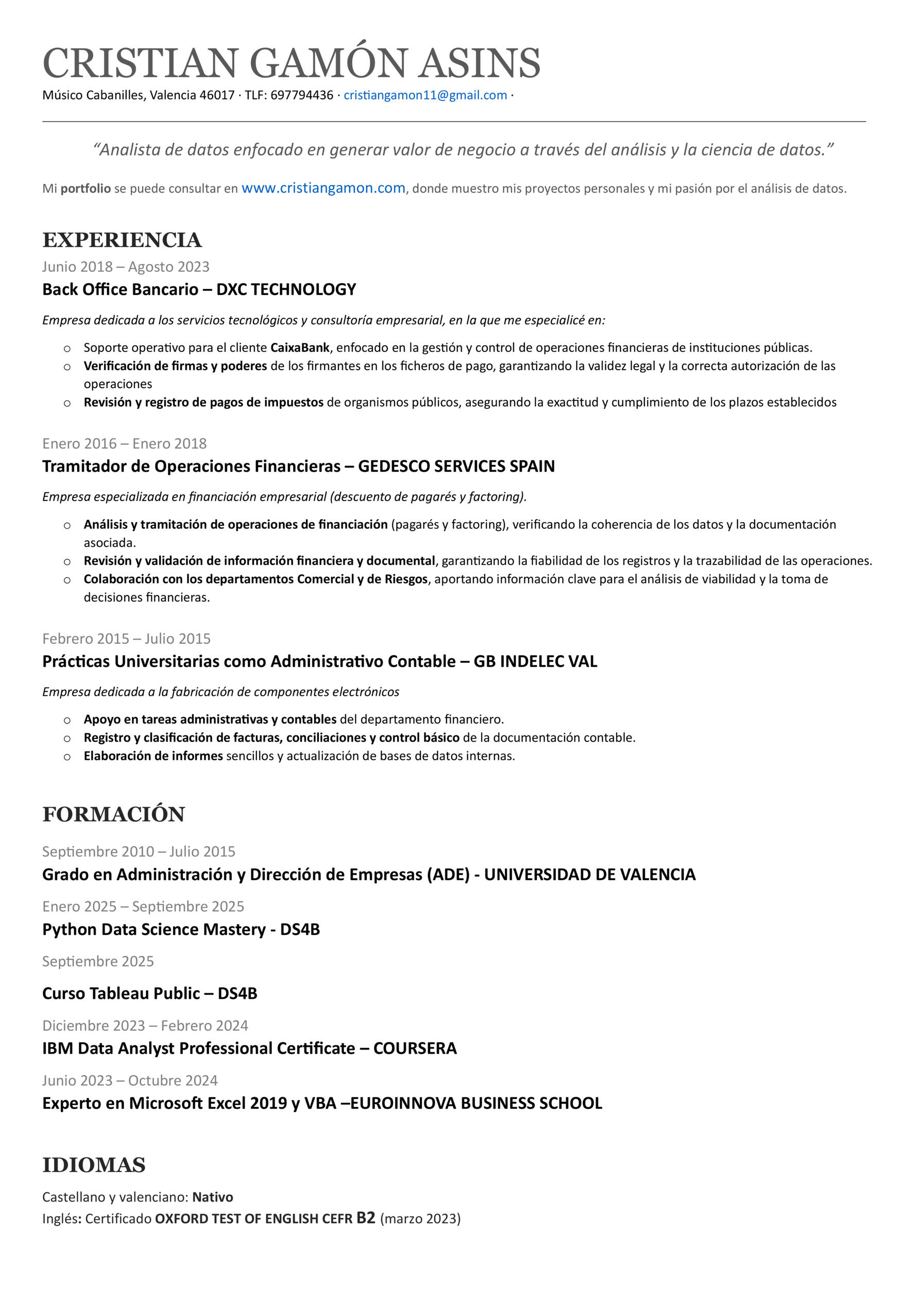 "Analista de datos enfocado en generar valor de negocio a través del análisis y la ciencia de datos."